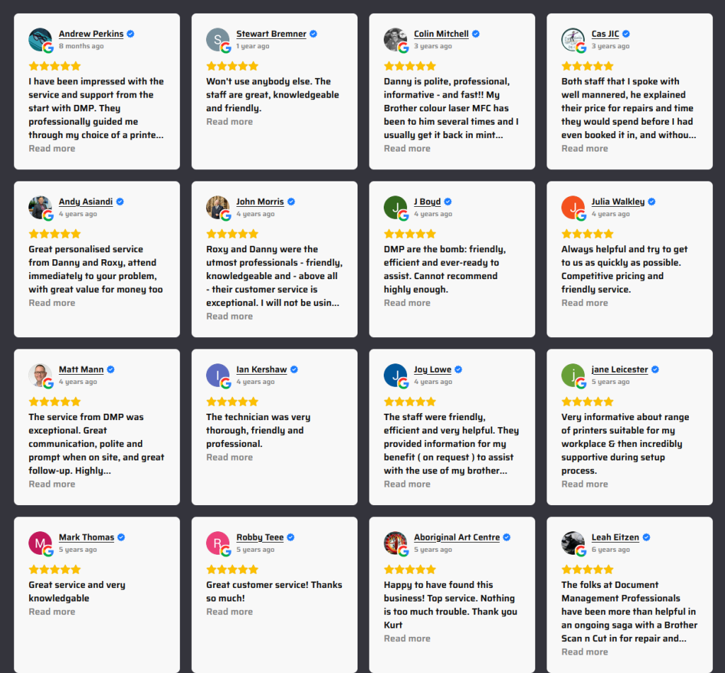 The feedback we receive from our clients is that they love our honest approach to the printer and copier industry. We are proud knowing that our business has grown to what is today from customer satisfaction and referrals.